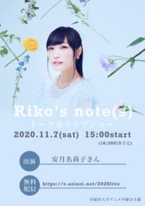 今年度も早稲田祭にて当会主催のイベントを開催することが決定いたしました! 本年開催するのは、「安月名莉子 『Riko’s note(s)』」です!! こちら、オンラインイベント(YouTube Liveにて配…